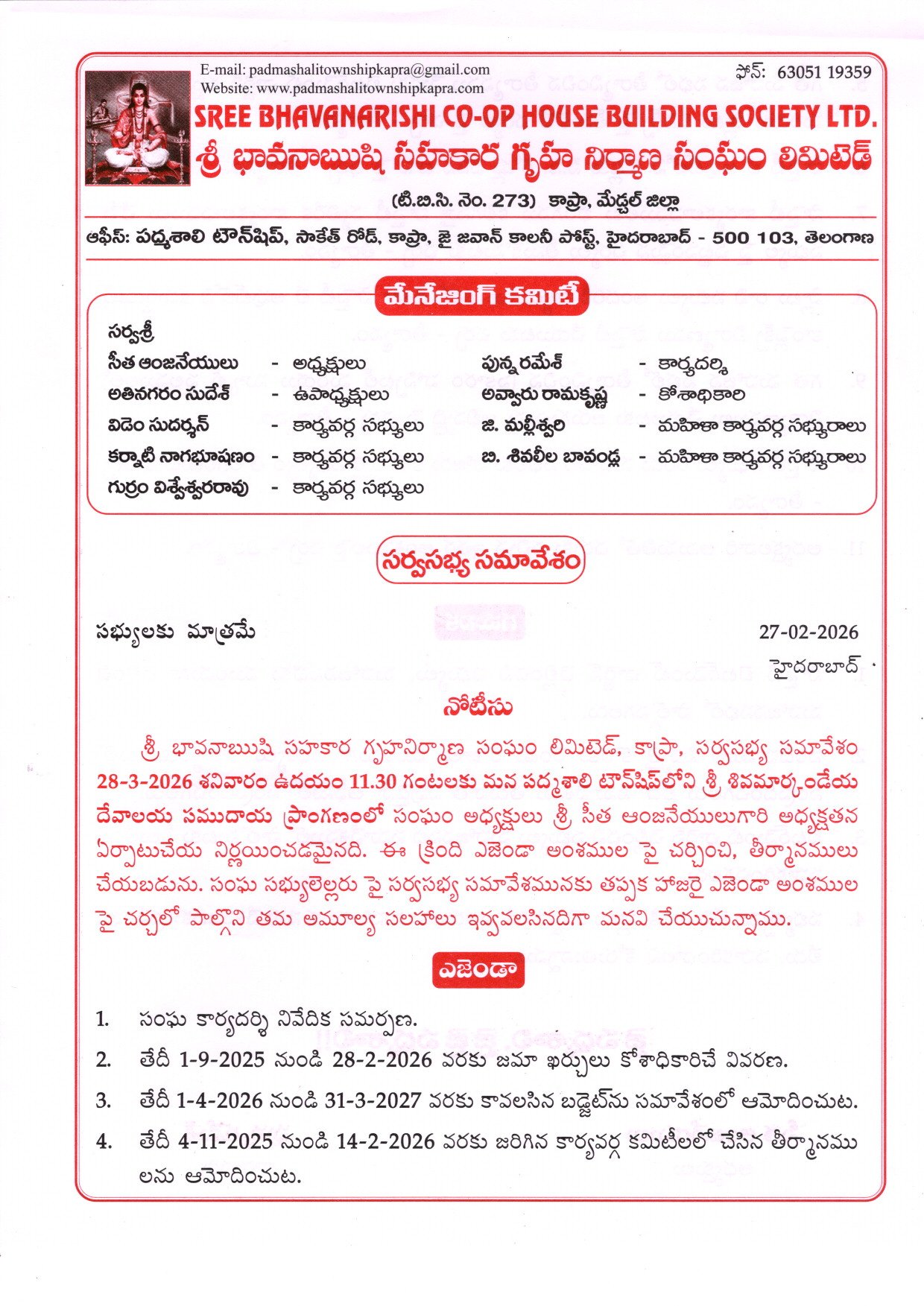 padmashalitownshipkapra@gmail.com